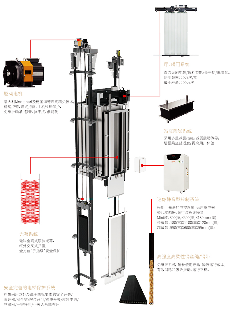 含金色鋁合金框架井道4層電梯上海地區標準配置價格: