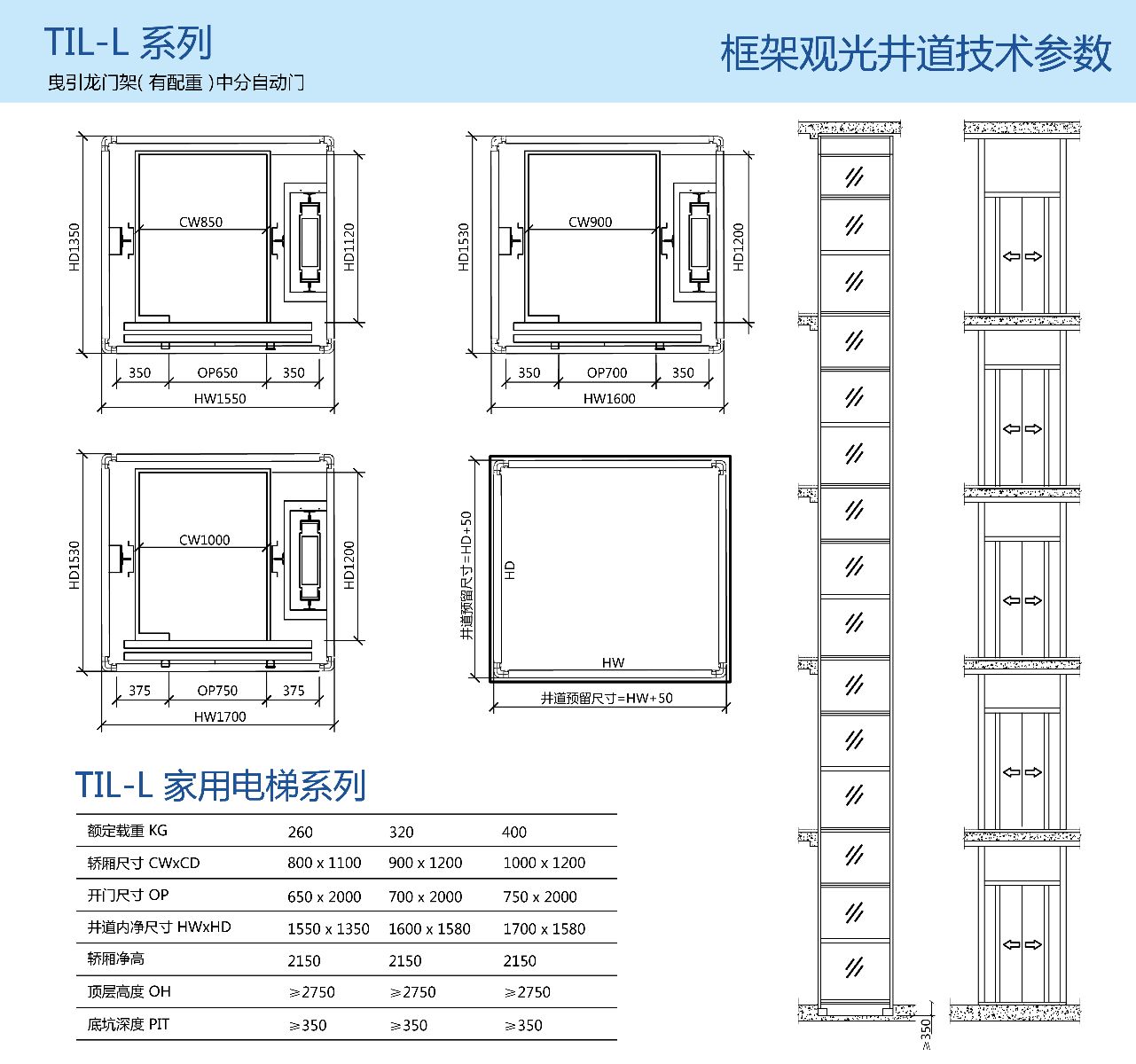 - 龍門架結構,左右二側均有導軌,便電梯運行更舒適,更安全;